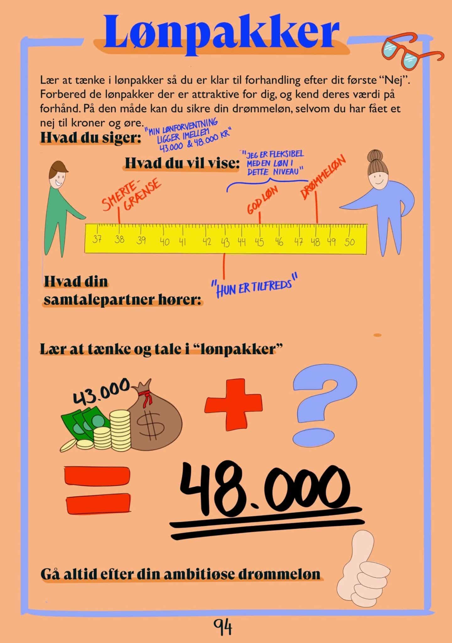 Bogen klæder dig også på til at researche din markedsværdi – både gennem branchestatistik og samtaler med kolleger. Du bliver desuden forberedt på selve lønsamtalen, hvor du lærer at tænke i lønpakker og have både en plan A og en plan B klar.